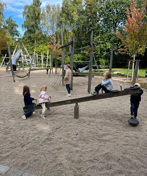 Der eingezäunte Bereich sorgt für eine entspannte Grundstimmung. Kinder können sich frei bewegen, während Eltern den Überblick behalten. Überall gibt es etwas zu tun. Klettern, rutschen, balancieren oder einfach durch die Anlage streifen und neue Ecken entdecken.